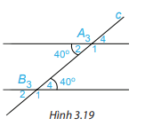HĐ 3 trang 47 Toán lớp 7: Trên Hình 3.18, cho biết hai góc so le trong A1 và B3 bằng nhau và bằng .