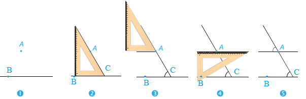 Bước 2: Đặt ê ke sao cho 1 cạnh của góc vuông của ê ke nằm trên đường thẳng a, 1 cạnh góc vuông còn lại đi qua điểm A, ta kẻ đường thẳng b đi qua A, vuông góc với a.