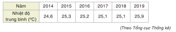 Bài 5.17 trang 107 Toán lớp 7: Vẽ biểu đồ đoạn thẳng biểu diễn nhiệt độ không khí trung bình tại Hà Nội trong 6 năm từ 2014 đến 2019.