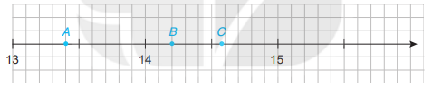 Bài 2.22 trang 38 Toán lớp 7: Nam vẽ một phần trục số trên vở ô li và đánh dấu ba điểm A, B,C như sau: