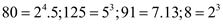 nên chỉ có 91 có ước nguyên tố khác 2,5 nên