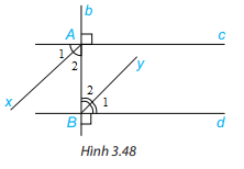 Bài 3.29 trang 58 Toán lớp 7: Kẻ các tia phân giác Ax, By của một cặp góc so le trong tạo bởi đường thẳng b vuông góc với hai đường thẳng song song c, d ( H.3.48). Chứng minh rằng hai tia phân giác đó nằm trên hai đường thẳng song song.