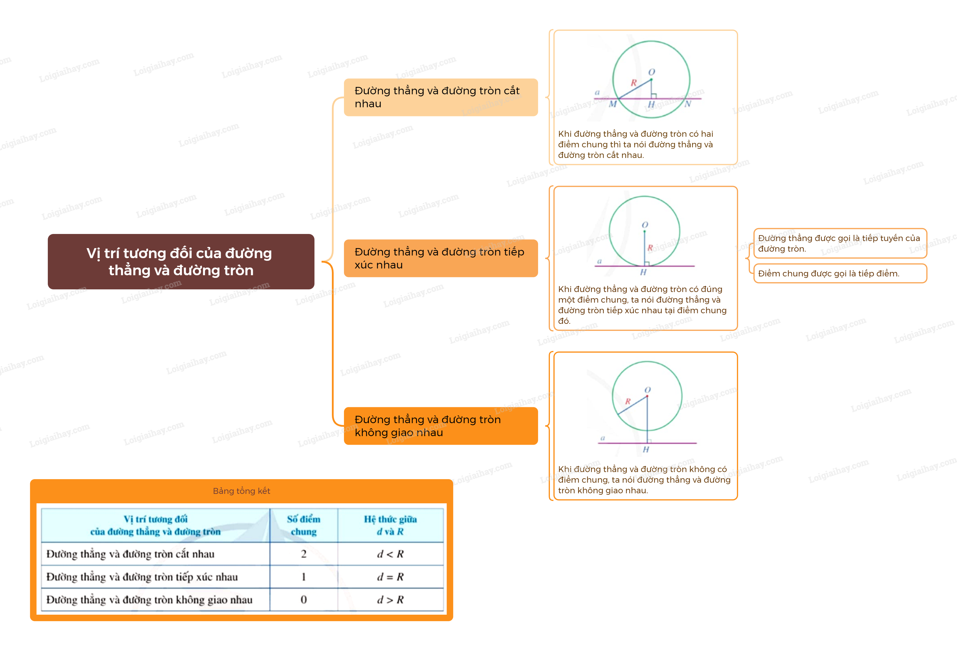 Sơ đồ tư duy Vị trí tương đối của đường thẳng và đường tròn