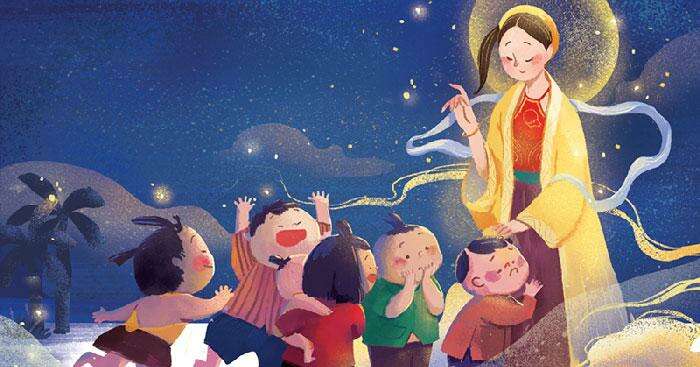 Ông mặt trời dần khuất sau lũy tre làng. Màn đêm buông xuống. Bầu trời cao thăm thẳm và lấp lánh những vì sao đêm. Tiết trời mát mẻ, dễ chịu. Gió thoảng thoảng khẽ vờn trong những tán cây. Khắp xóm làng nhộn nhịp tiếng cười của lũ trẻ rủ nhau đi phá cỗ Trung Thu.