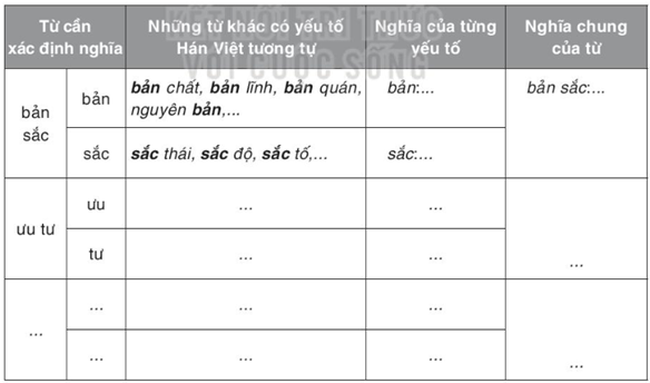 Câu 2 trang 90 SGK Ngữ văn 7 tập 2: Bản sắc, ưu tú, truyền thông là các từ có yếu tố Hán Việt. Lập bảng theo mẫu được gợi ý sau đây để xác định nghĩa của chúng: